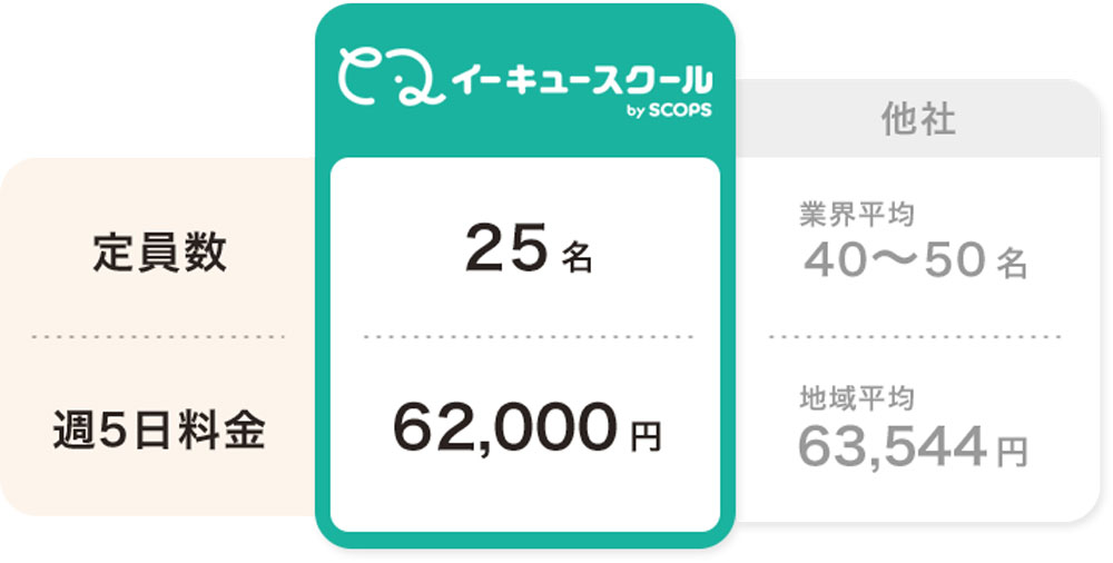 - ※1 ・・・ 当社調べ。宮前区の主要な学童施設について週5日固定利用契約、「保育料・別途費用」を含む合計金額の平均値で算出