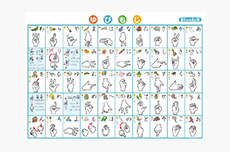 プログラムで、自己紹介の手話を覚えます。