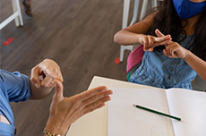 覚えてきた手話を実際に使い、対話に挑戦。ゆっくり話すことで、相手に伝わりやすくなることを発見